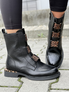 Detal, który robi różnicę – modne paski w zwierzęcy print sprawiają, że te botki są jednocześnie eleganckie i zadziorne. To nie są zwykłe buty. To buty, które mówią: „Mam styl. Wiem, czego chcę.”