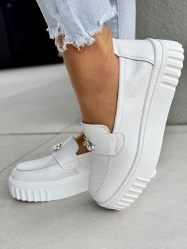 Stylowe, białe, z delikatną strukturą skóry i gustownym dodatkiem – ozdobnym elementem z perłą i kryształkiem – są uosobieniem ponadczasowej klasy.