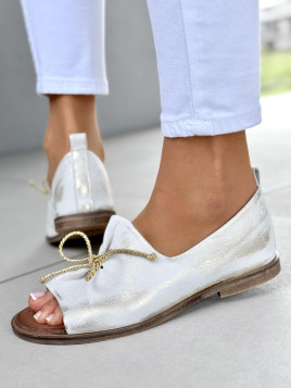 Złote sznurowanie, delikatny połysk skóry i otwarta konstrukcja – subtelna elegancja w miejskim wydaniu.