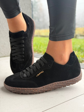 Ponadczasowy design – matowa czerń i delikatna faktura skóry sprawiają, że te sneakersy pasują do wszystkiego: od jeansów po sukienkę.