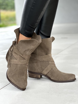 Oliwkowe botki damskie skórzane