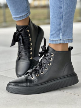 Oryginalne wysokie czarne trampki damskie marki Oleksy to nie tylko obuwie, ale prawdziwa definicja stylu i uroku na wiosnę i lato. Wykonane z wysokiej jakości naturalnej skóry, trampki prezentują się niezwykle stylowo i nadają się doskonale do różnorodnych okazji.