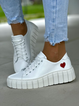 Piękne białe trampki damskie skórzane z subtelnym serduszkiem OLEKSY polskiej produkcji
