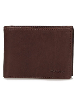 Portfel wykonany z naturalnej, włoskiej skóry, wyposażony w przegródki na karty, banknoty oraz