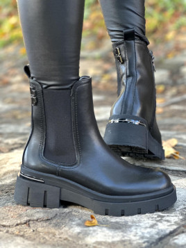 Sztyblety te charakteryzują się wygodnym zapięciem na zamek oraz elastycznymi wstawkami po bokach, które ułatwiają zakładanie i zdejmowanie butów. Masywna, dobrze wyprofilowana podeszwa z bieżnikiem zapewnia doskonałą przyczepność i stabilność, co czyni je idealnym wyborem na chłodniejsze dni. Dzięki solidnej konstrukcji i wytrzymałej skórze, te buty sprawdzą się w codziennym użytkowaniu, gwarantując komfort nawet przez wiele godzin noszenia.