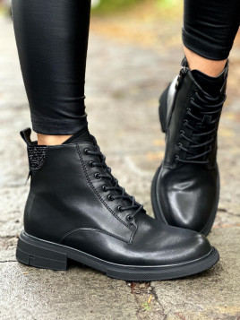 Wygodna, płaska podeszwa oraz sznurowanie zapewniają doskonałe dopasowanie do stopy, a dodatkowy boczny zamek umożliwia szybkie zakładanie i zdejmowanie butów. Naturalna skóra gwarantuje trwałość i odporność na zmienne warunki pogodowe, zapewniając komfort noszenia przez cały dzień. Wnętrze buta wyłożone miękką wyściółką dodatkowo podnosi komfort użytkowania.