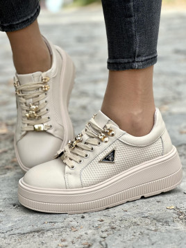Odkryj nowoczesne sneakersy wykonane z najwyższej jakości skóry naturalnej, które zapewnią Ci komfort na każdym kroku. Ich subtelny beżowy kolor doskonale komponuje się z różnymi stylizacjami, a solidna podeszwa gwarantuje wygodę i trwałość. Idealne zarówno na co dzień, jak i na wyjątkowe okazje. Wybierz jakość i styl, które będą Ci towarzyszyć przez wiele sezonów.