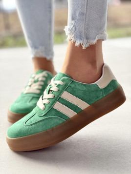 Styl retro spotyka nowoczesną elegancję. Te buty to idealne połączenie klasyki i trendów. Zielona, miękka skóra naturalna. Kontrastowe detale. Gumowa podeszwa, która zapewnia sprężystość i trwałość. To nie są zwykłe buty – to sneakersy, które przyciągają spojrzenia i podkreślają Twój styl.