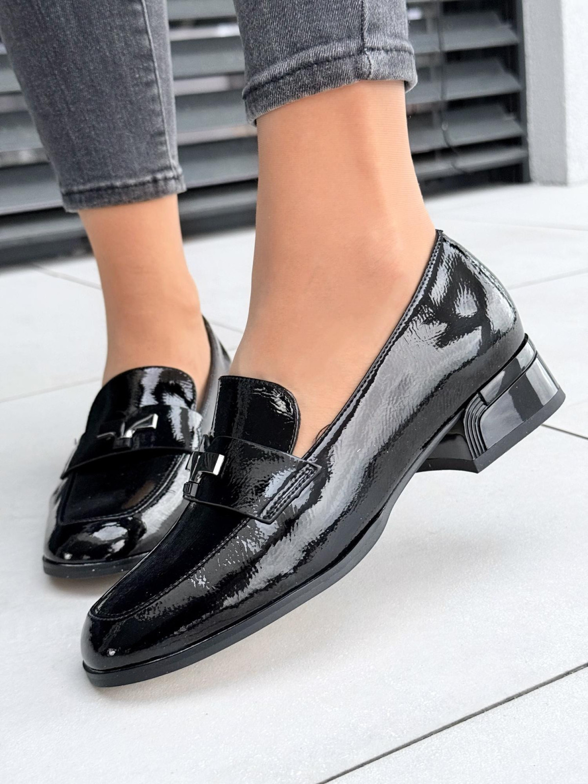 Wyobraź sobie buty, które nie tylko wyglądają zjawiskowo, ale również zapewniają komfort, jakiego nigdy wcześniej nie doświadczyłaś. Nasze **czarne, lakierowane mokasyny ze 100% naturalnej skóry** to synonim luksusu, wygody i perfekcyjnego wykonania. Zaprojektowane dla kobiet, które nie uznają kompromisów – zarówno w modzie, jak i w komforcie!