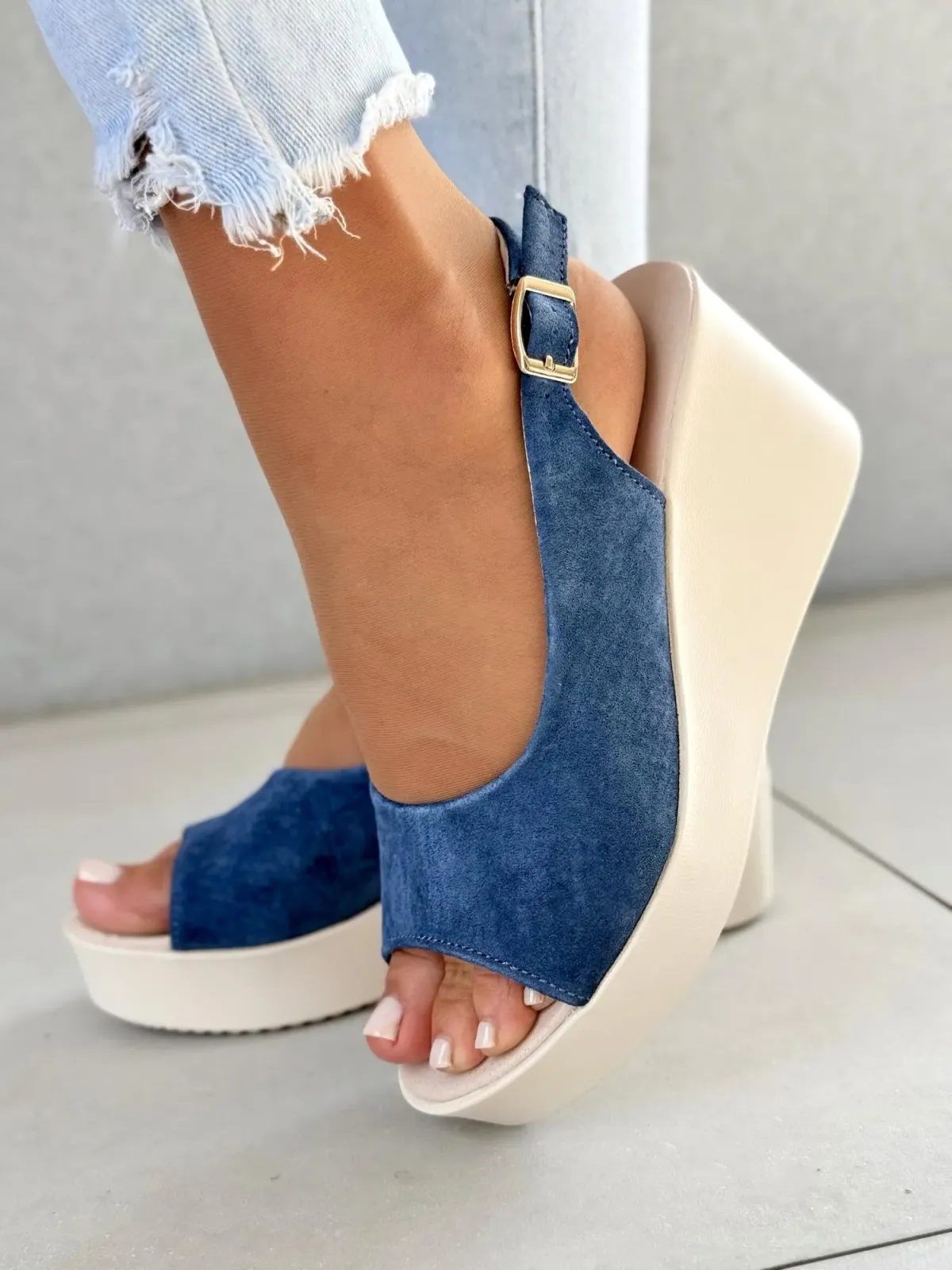 Miękka wyściółka i profilowana wkładka – Twoje stopy odpoczywają nawet po całym dniu na nogach. Wysokość koturny została przemyślana tak, byś mogła wyglądać zjawiskowo bez bólu i napięcia łydek.