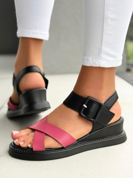 Skórzane paski w dwóch kontrastujących kolorach – elegancka czerń z nutą głębokiego różu. Połączenie, które pasuje zarówno do białych jeansów, jak i zwiewnej sukienki.