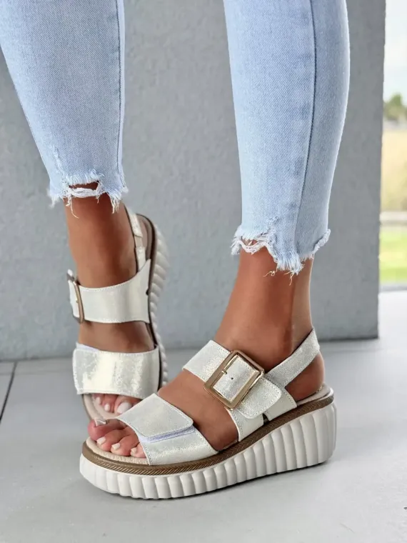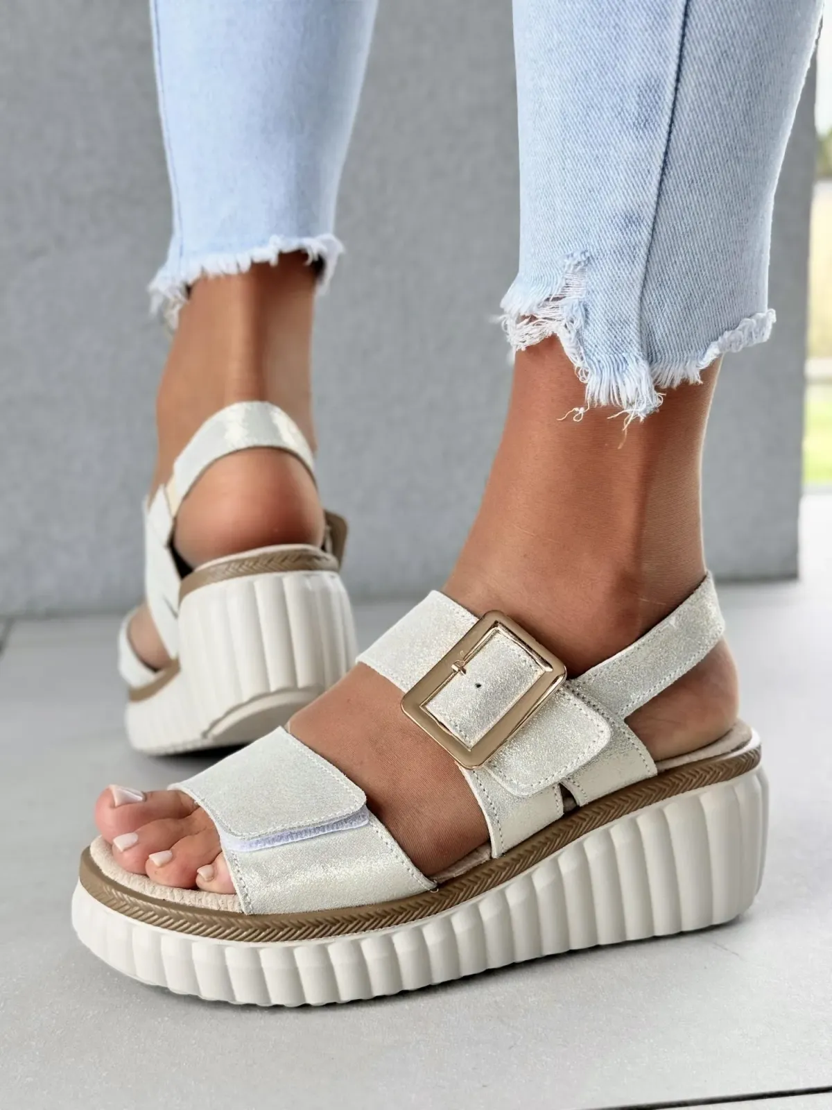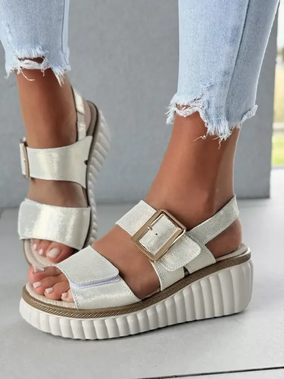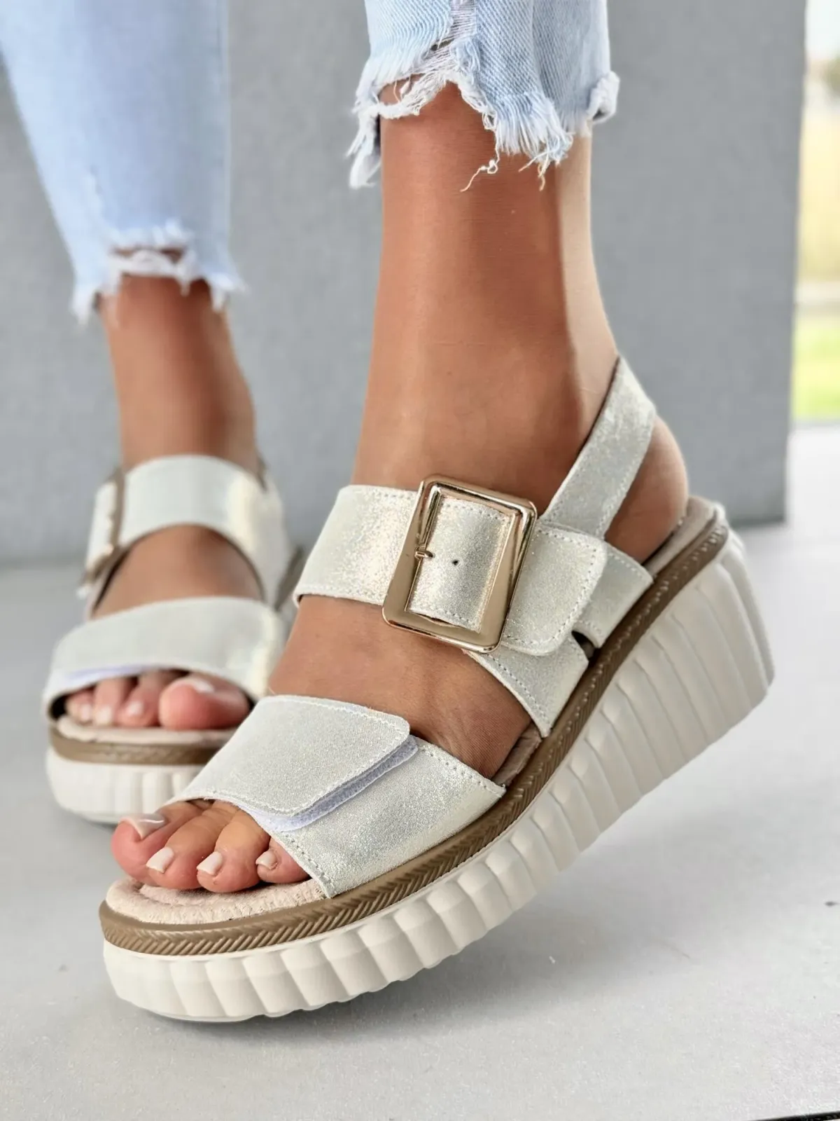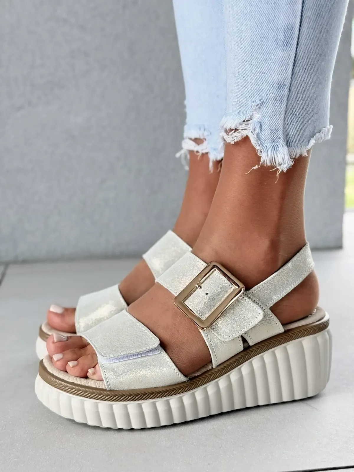 ✅ Design, który przyciąga spojrzenia – Połyskująca skóra, subtelny odcień pasujący do każdej stylizacji, nowoczesna forma i detal w postaci złotej klamry sprawiają, że te sandały po prostu robią efekt „WOW”. Założysz je do dżinsów, sukienki, a nawet do biura.