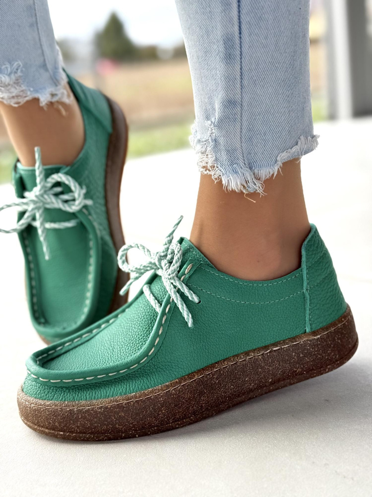 Te unikatowe półbuty, wykonane w 100% z naturalnej skóry, zarówno wewnątrz, jak i na zewnątrz, to połączenie klasyki i nowoczesności. Są lekkie, elastyczne i perfekcyjnie dopasowują się do kształtu stopy. To buty, które staną się Twoim ulubionym wyborem na co dzień – niezależnie od tego, czy pędzisz do pracy, spacerujesz po mieście czy spędzasz dzień w ulubionej kawiarni.