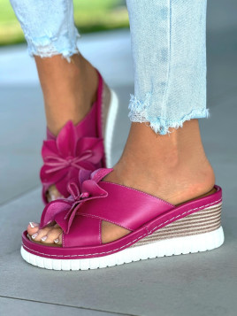 Różowe klapki damskie z ozdobnym kwiatkiem na koturnie to połączenie dziewczęcej delikatności z wygodą noszenia i subtelnością designu. Wykonane z wysokiej jakości skóry naturalnej, klapki nie tylko zapewniają trwałość, ale także komfort podczas chodzenia, dopasowując się idealnie do stopy. Ozdobny kwiatek, nadaje im niezwykłego uroku i romantycznej elegancji. Kwiatowy motyw dodaje im subtelności i świeżości, co sprawia, że stają się one wyjątkowym akcentem letniej stylizacji.Koturna dodaje klapkom nie tylko elegancji, ale także stabilności i wygody podczas noszenia, co czyni je doskonałym wyborem na długie spacery czy letnie wyjścia. Różowy kolor klapki dodaje im dziewczęcego uroku i sprawia, że są one idealnym dodatkiem do letniej garderoby, doskonale komponującym się zarówno z letnimi sukienkami, jak i codziennymi stylizacjami.