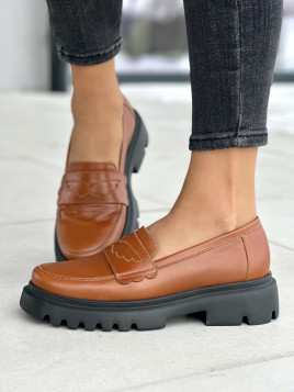 Cholewka wykonana z naturalnej skóry nadaje mokasynom elegancki, a jednocześnie surowy wygląd. Kolor rudych mokasynów dodaje im ciepła i charakteru, co sprawia, że są one doskonałym akcentem dla stylizacji. Model ten cechuje się wsuwaniem, co sprawia, że są one łatwe i wygodne do założenia, a zarazem praktyczne na co dzień.