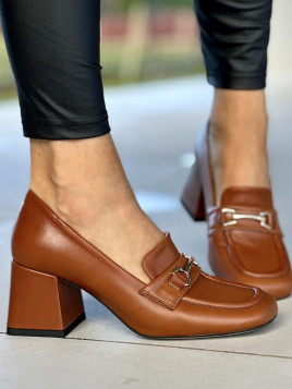 Rude półbuty damskie ze skóry naturalnej na średnim obcasie