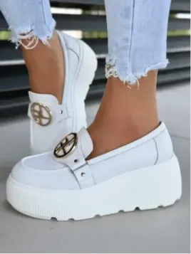 Wyobraź sobie buty, które są tak wygodne, że zapominasz, że w ogóle masz je na sobie. A teraz wyobraź sobie, że te same buty przyciągają spojrzenia, dodają Ci kilku centymetrów i pewności siebie — bez grama wysiłku. Witaj w świecie, gdzie wygoda spotyka luksus. Poznaj nasze białe mokasyny na platformie ze 100% naturalnej skóry – stworzone z myślą o kobietach takich jak Ty.