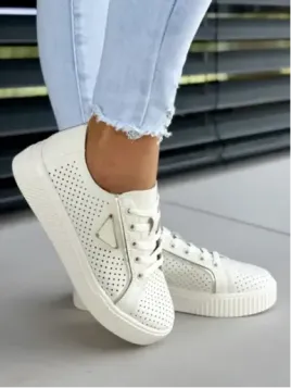 Perforowana cholewka, minimalistyczna forma i delikatny detal w postaci geometrycznego znaku czynią je ponadczasowo eleganckimi. Pasują zarówno do dżinsów, jak i do sukienki. Na spacer, do biura, na city break w Rzymie.