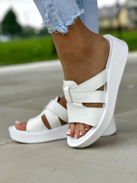 Śliczne wygodne białe klapki damskie, skóra naturalna