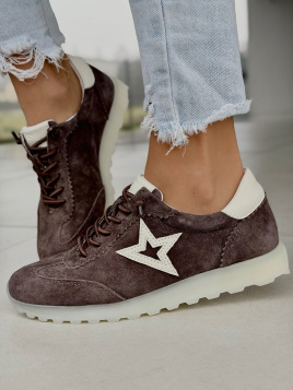 Ciemnobrązowa skóra z delikatną fakturą, solidne szwy i perfekcyjnie dobrana biała podeszwa tworzą harmonijny duet – klasyczny, ale nowoczesny. Pasuje do wszystkiego: jeansów, legginsów, casualowych sukienek.