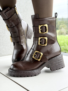 Naturalna skóra, masywna podeszwa i złote klamry – to połączenie, obok którego nie da się przejść obojętnie. Te botki nie tylko wyglądają obłędnie, one budują Twój wizerunek.