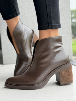 Wyjątkowe wycięcie na cholewce dodaje lekkości i subtelnie wydłuża nogę. Brązowa skóra o aksamitnym wykończeniu nadaje im charakteru – pasują zarówno do jeansów, jak i do sukienki boho czy eleganckiej spódnicy.