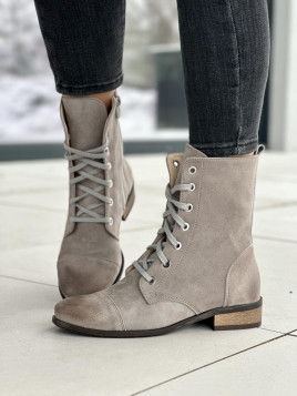 Szary kolor zamszu nadaje botkom uniwersalności, umożliwiając ich zestawianie z różnymi stylizacjami. To obuwie, które doskonale sprawdzi się zarówno w codziennych, jak i bardziej formalnych okolicznościach.