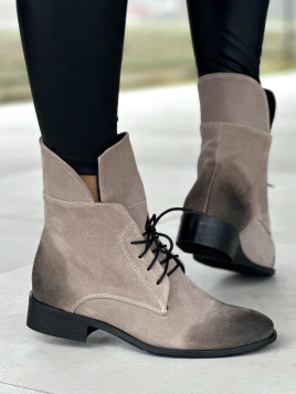 Sznurowane wykonanie tych botków dodaje im modnego charakteru, umożliwia również precyzyjne dopasowanie do kształtu stopy, co wpływa pozytywnie na komfort noszenia. Czarne sznurówki kontrastują z szarością butów, nadając im dynamicznego wyrazu.