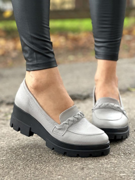 Szare mokasyny damskie marki Oleksy to eleganckie i stylowe obuwie. Wykonane z wysokiej jakości skóry, prezentują się niezwykle wytwornie, zapewniając trwałość i wyrafinowany wygląd. Ich szara barwa dodaje subtelnej elegancji, a czarna podeszwa stanowi kontrastujący, modny akcent.
