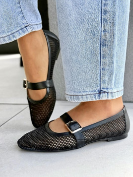 Czarne, stylowe baleriny, które łączą ponadczasowy szyk z nowoczesnym twistem. Siatka i skóra naturalna. Klasyka spotyka awangardę. Czy można chcieć więcej?