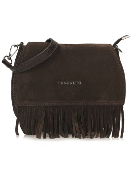 Brązowa listonoszka wykonana z naturalnej skóry zamszowej to elegancki model z nutą stylu boho. Klapka ozdobiona długimi frędzlami nadaje jej wyjątkowego charakteru, a srebrne detale podkreślają nowoczesny wygląd. Torebka ma jedną komorę zamykaną na zamek, wewnętrzną kieszeń oraz pasek ze skóry naturalnej z możliwością regulacji, co zapewnia wygodę noszenia.