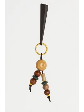 Stylowy brelok damski, wykonany z ozdobnych koralików w odcieniach beżowym, zielonym i brązowym. Świetnie sprawdzi się jako elegancka ozdoba do torebki, plecaka lub kluczy. Solidne wykończenie oraz metalowe zapięcie w kolorze złotym gwarantują trwałość i wygodę użytkowania.