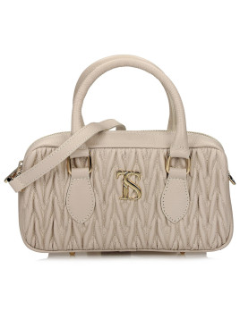 Delikatna i bardzo kobieca, listonoszka w kolorze kremowym to połączenie elegancji i nowoczesnego stylu. Jej znak rozpoznawczy to ozdobne marszczenie z przodu oraz subtelne złote logo, które dodaje torebce luksusowego charakteru.