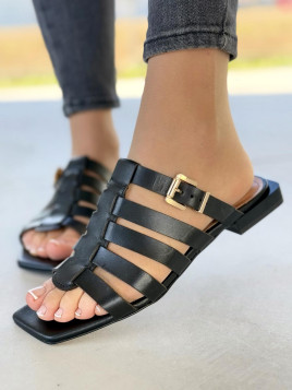 Czarne, eleganckie, ze stylowymi paskami i delikatną sprzączką w kolorze złota. Świetnie komponują się zarówno z sukienkami, jak i spodniami. Idealne na miasto, wakacje i do biura.