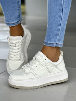 Te trampki to nie tylko stylowe obuwie, ale także wyraz praktyczności i wygody. Idealne na wiosenne spacery czy letnie wyjścia, podkreślą Twoje naturalne piękno i aktywny styl życia. Wygodne białe trampki damskie na grubej podeszwie, skóra naturalna, sznurowane - odkryj równowagę między modą a komfortem na każdym kroku.