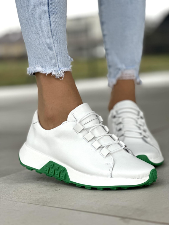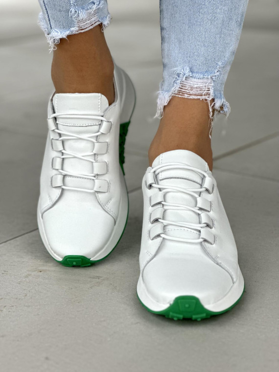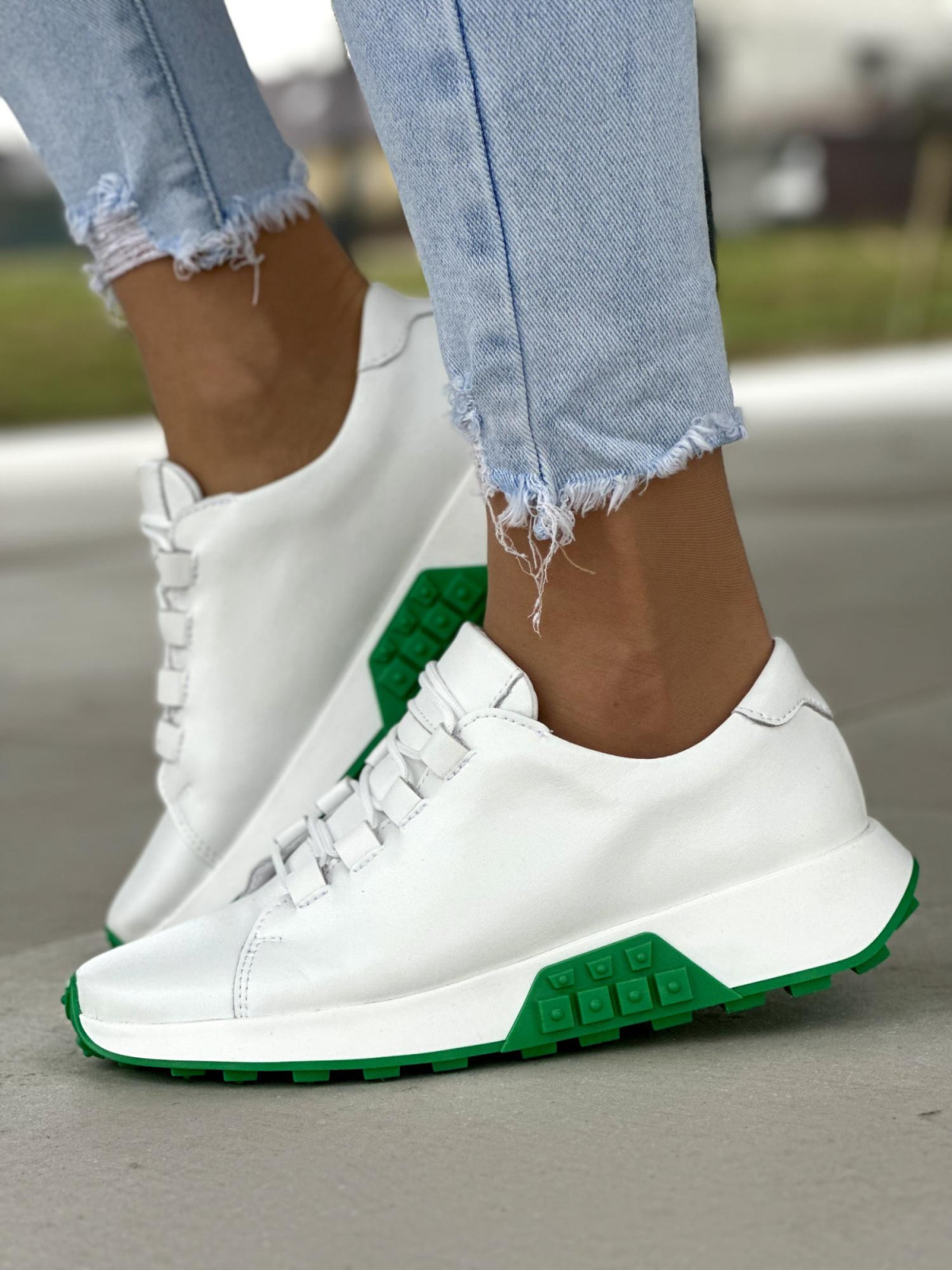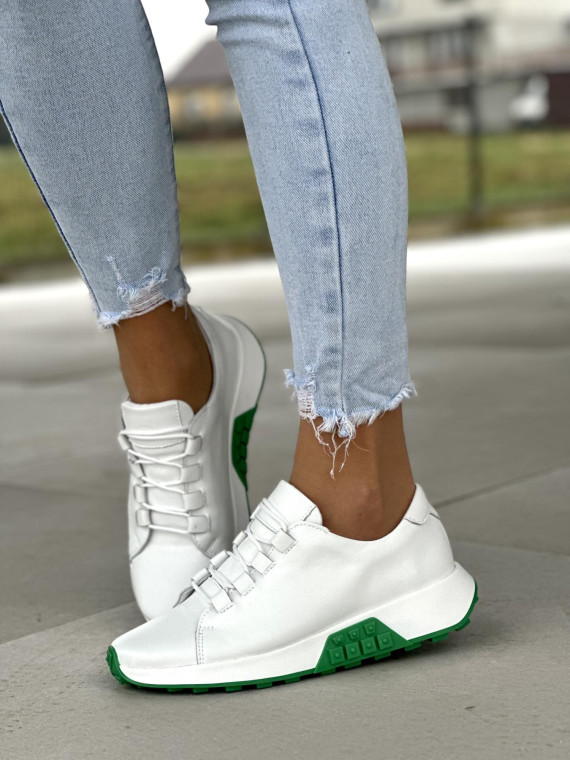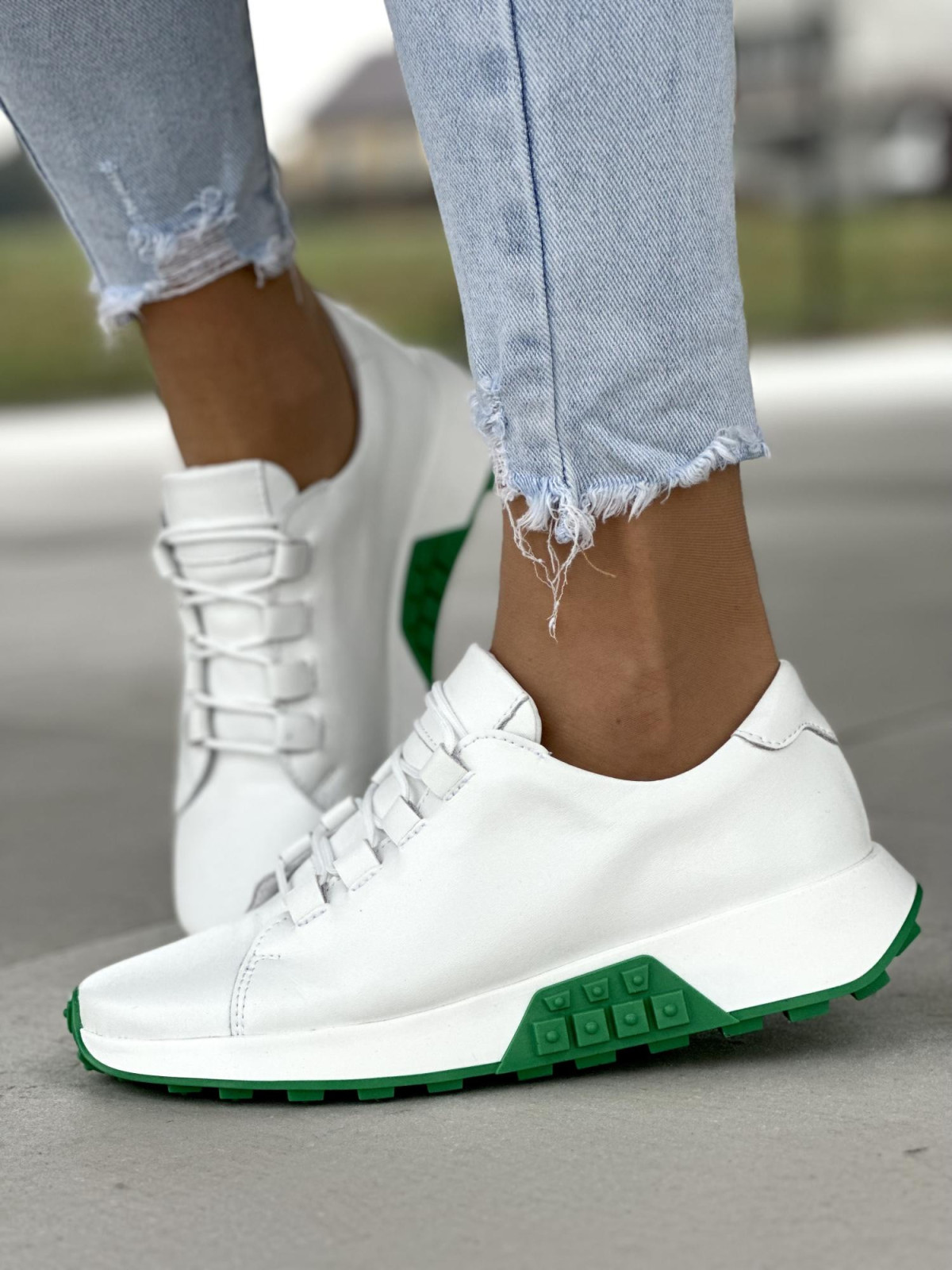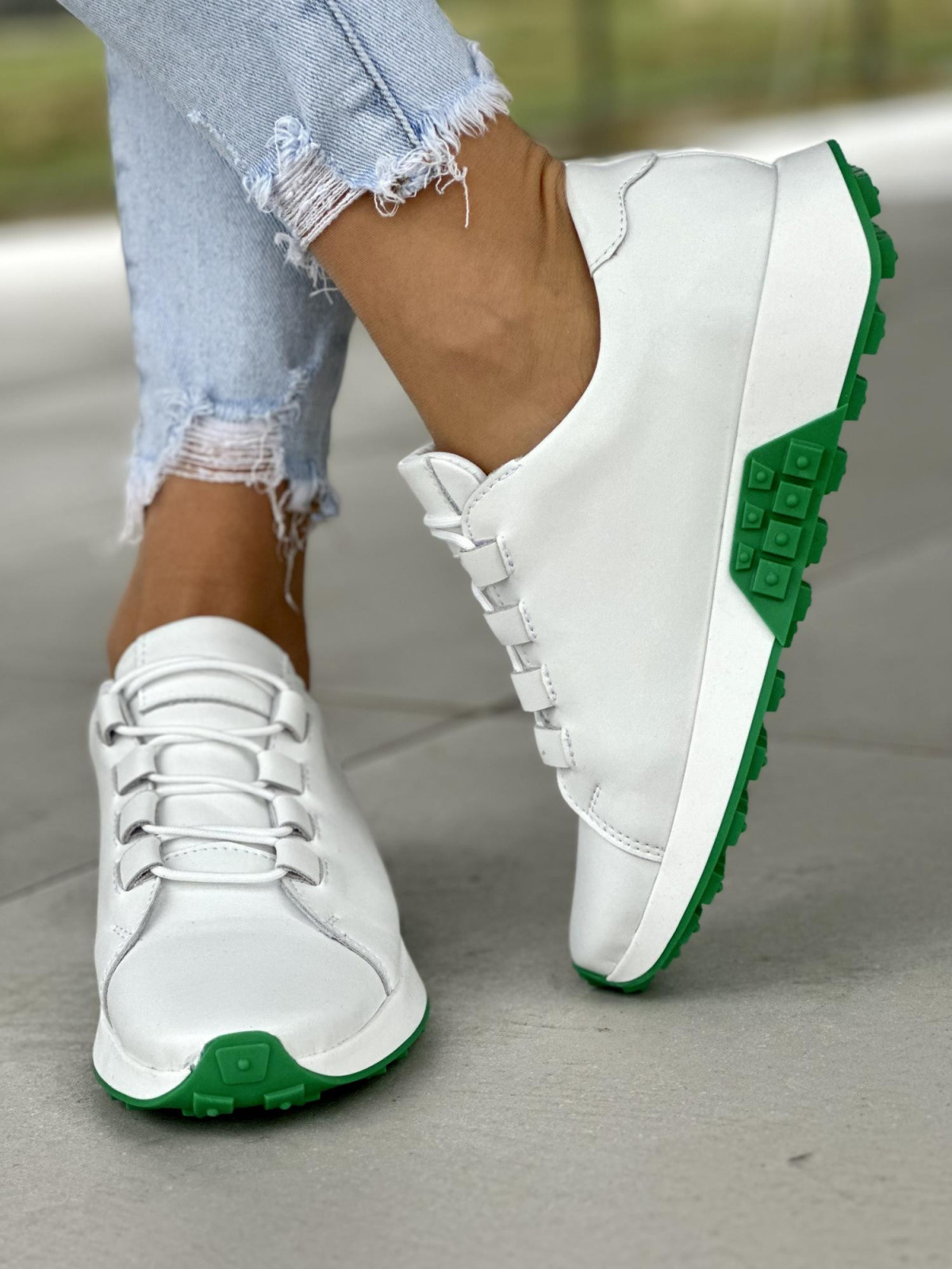 Wygodne białe trampki damskie na lekkiej zielonej podeszwie to idealny wybór na wiosnę i lato dla kobiet ceniących styl i wygodę. Wykonane z wysokiej jakości skóry naturalnej marki Oleksy, te trampki łączą w sobie elegancję z nieformalnym stylem. Ich sznurowany design nie tylko zapewnia idealne dopasowanie do stopy, ale także dodaje sportowego uroku. Lekka zielona podeszwa nie tylko podkreśla wyjątkowy charakter tych trampków, ale także zapewnia komfort noszenia przez dłuższy czas.