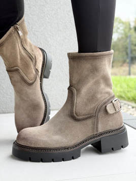 Te botki zostały wykonane z wysokogatunkowej, naturalnej skóry zamszowej, która dopasowuje się do kształtu Twojej stopy niczym rękawiczka. Wnętrze — miękkie, oddychające i przyjemne w dotyku — otula stopę, zapewniając komfort przez cały dzień.