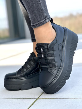 Sneakersy są doskonałą kombinacją funkcjonalności i modnego designu. Ich klasyczny kolor czarny sprawia, że łatwo można je dopasować do różnych stylizacji, zarówno casualowych, jak i bardziej eleganckich. Dodatkowo, wysoka podeszwa nadaje im nowoczesny wygląd, który podkreśla trendy streetwearu.