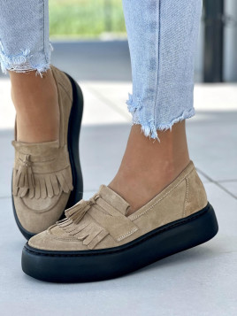Wygodne mokasyny Oleksy to doskonałe połączenie elegancji i wygody. Wykonane z wysokiej jakości skóry naturalnej w kolorze beżowym, prezentują się bardzo stylowo i gustownie. Gruba podeszwa zapewnia stabilność i komfort podczas codziennego użytkowania.