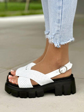 Wyjątkowe białe sandały damskie na czarnej podeszwie wykonane z wysokiej jakości skóry naturalnej to połączenie kontrastu i stylu. Biała górna część sandałów wyróżnia się elegancją i subtelnością, podczas gdy czarna podeszwa dodaje im nowoczesnego akcentu. Dzięki starannej konstrukcji oraz zastosowaniu materiałów najwyższej jakości, sandały nie tylko zachwycają wyglądem, ale także zapewniają niezrównany komfort noszenia. Regulowane paski umożliwiają idealne dopasowanie do stopy. Wyjątkowe białe sandały na czarnej podeszwie są nie tylko modnym dodatkiem do letnich stylizacji, ale również praktycznym i oryginalnym wyborem dla kobiet poszukujących obuwia, które wyróżnia się z tłumu.