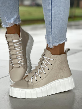 Wysokie beżowe trampki damskie marki Oleksy to połączenie stylu, wygody i jakości, idealne na wiosnę i lato. Wykonane z najwyższej jakości skóry naturalnej, trampki nie tylko zachwycają swoim wyglądem, ale także zapewniają trwałość i komfort noszenia przez długi czas.