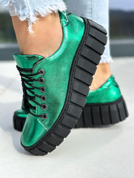Zielone trampki damskie skórzane